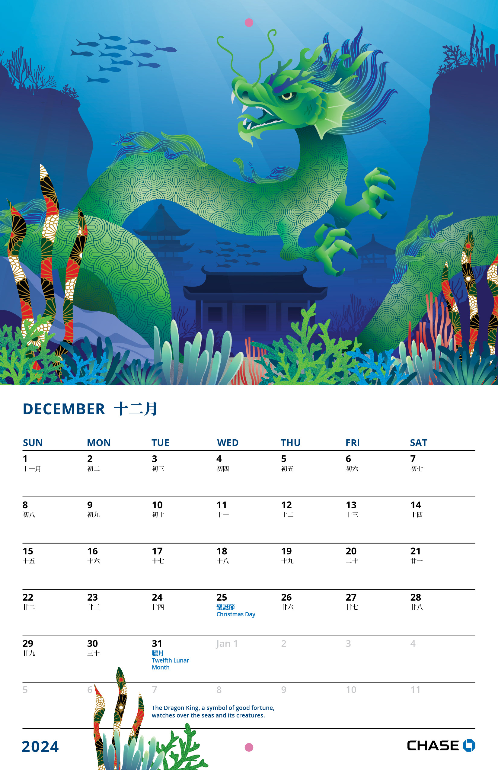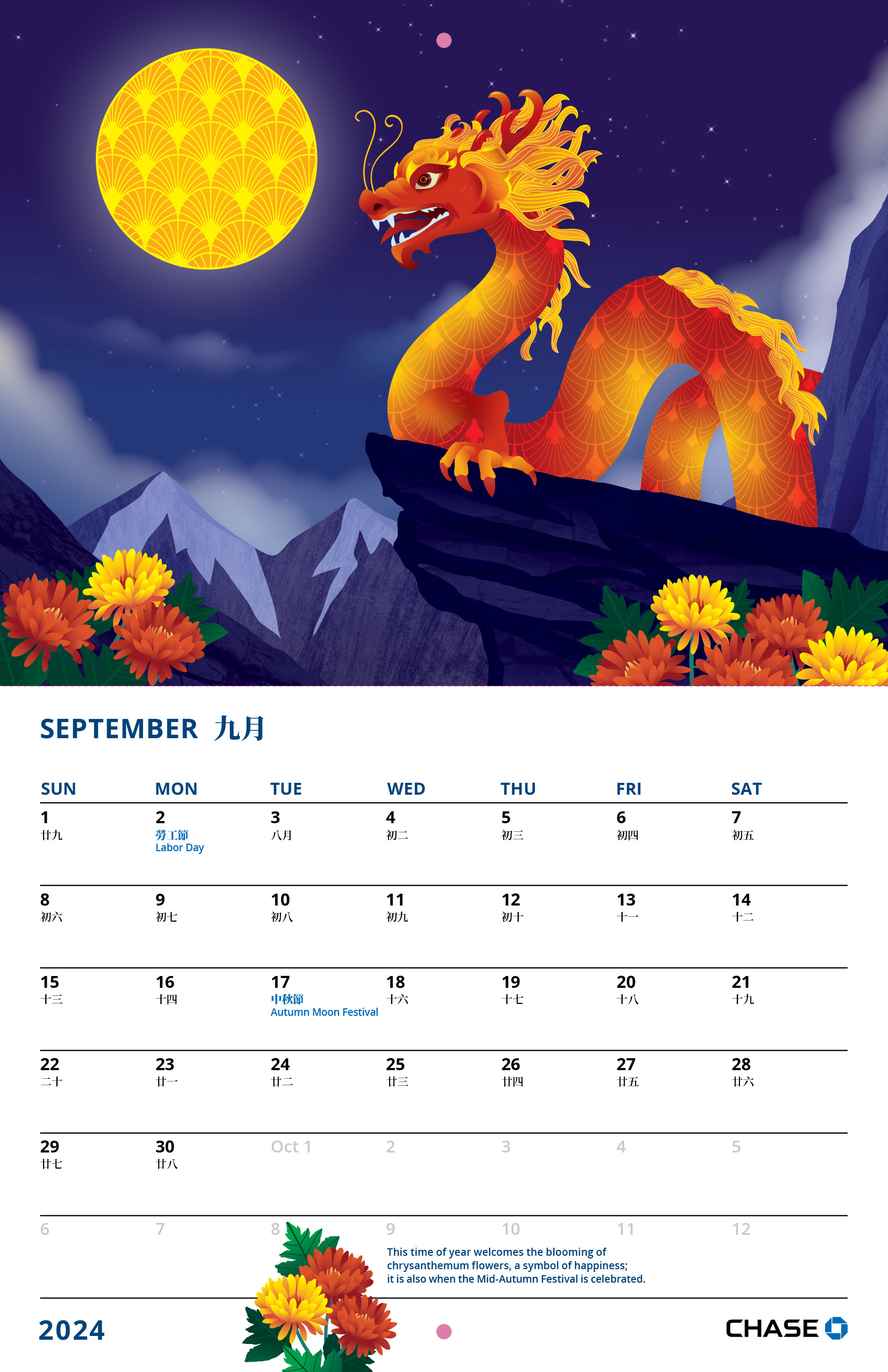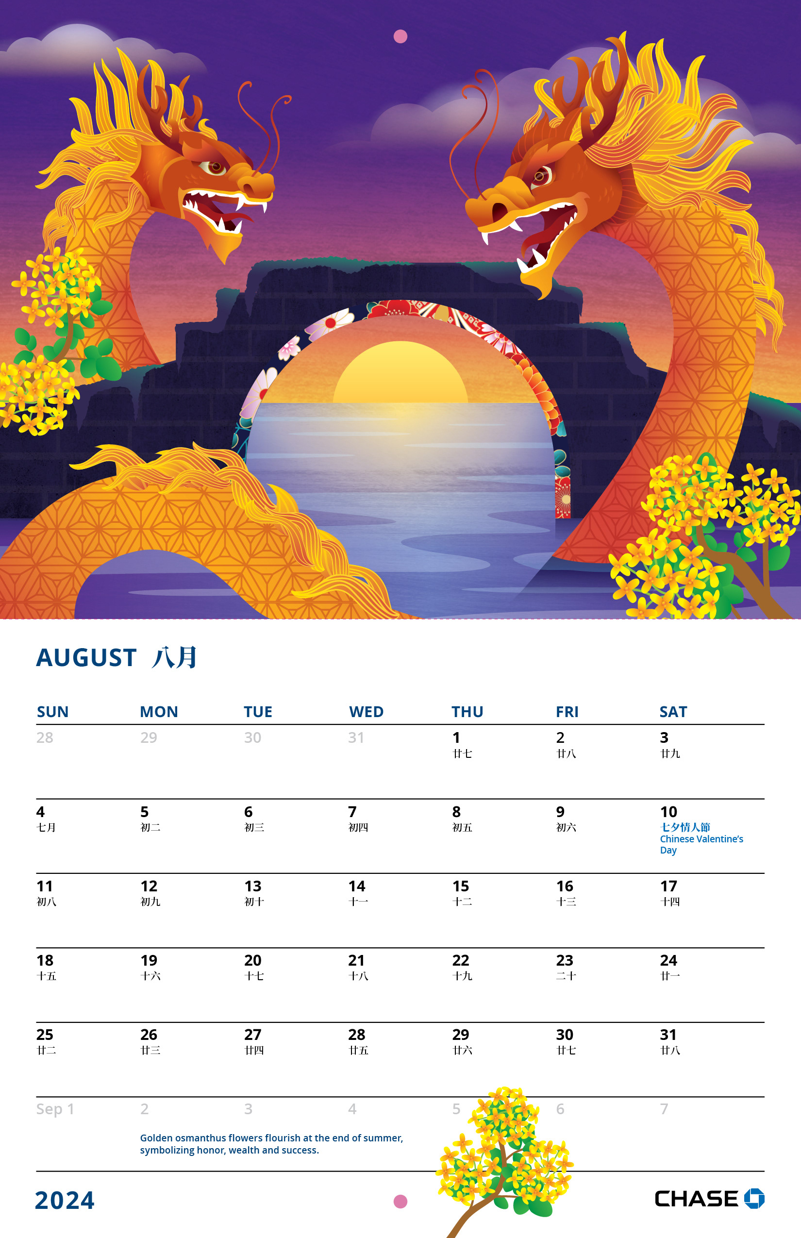 A contemporary illustration style portrays each month's scene with traditional elements and cultural significance for a Chinese audience.