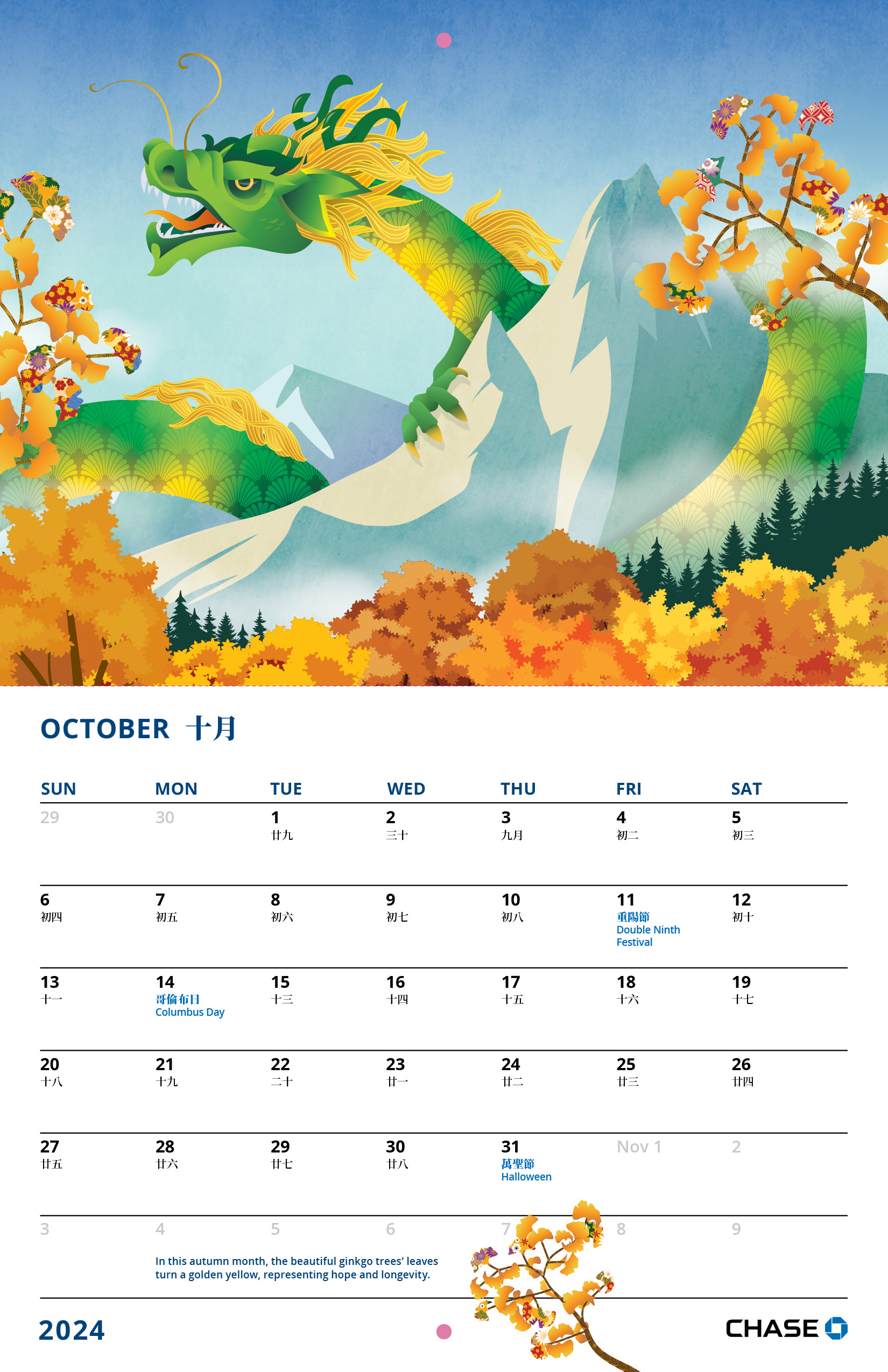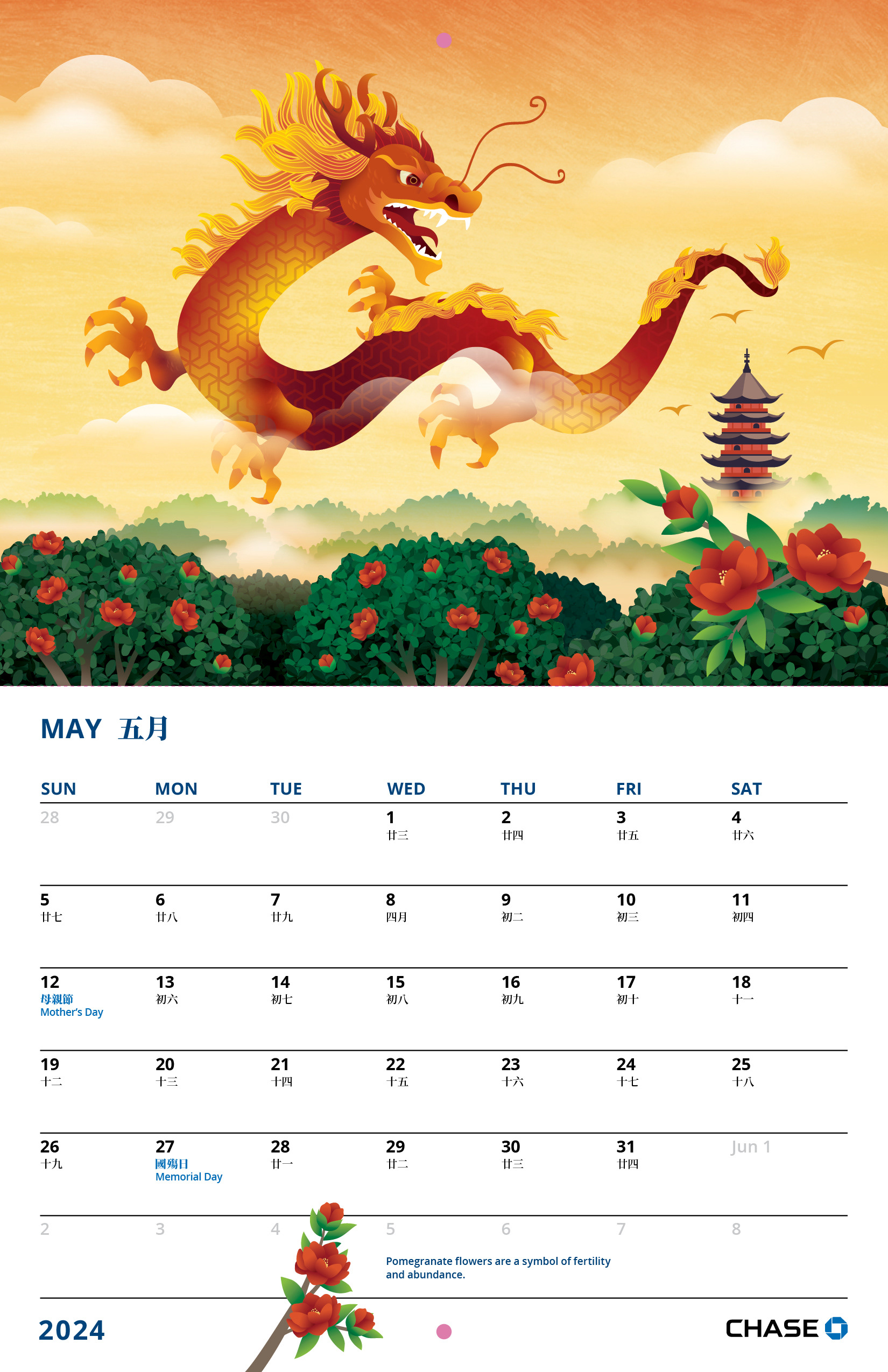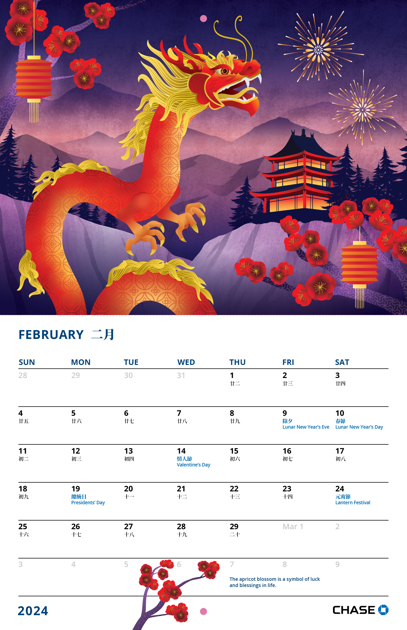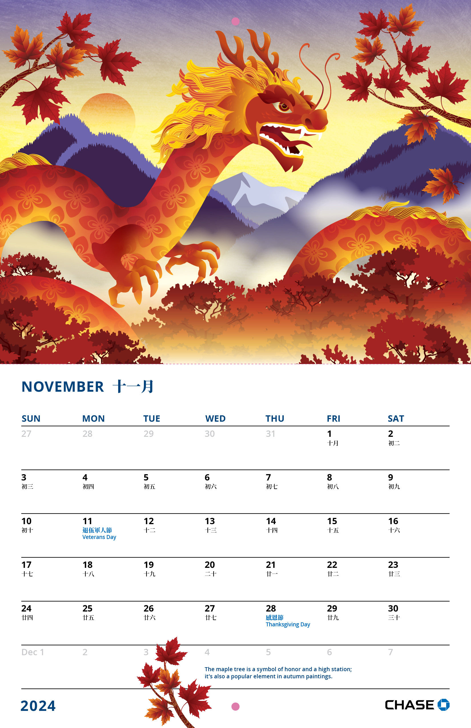 A contemporary illustration style portrays each month's scene with traditional elements and cultural significance for a Chinese audience.