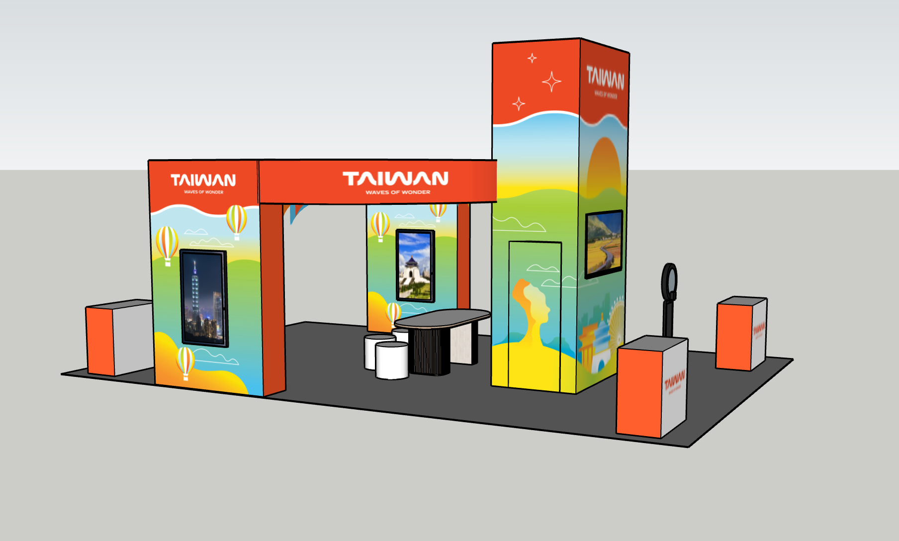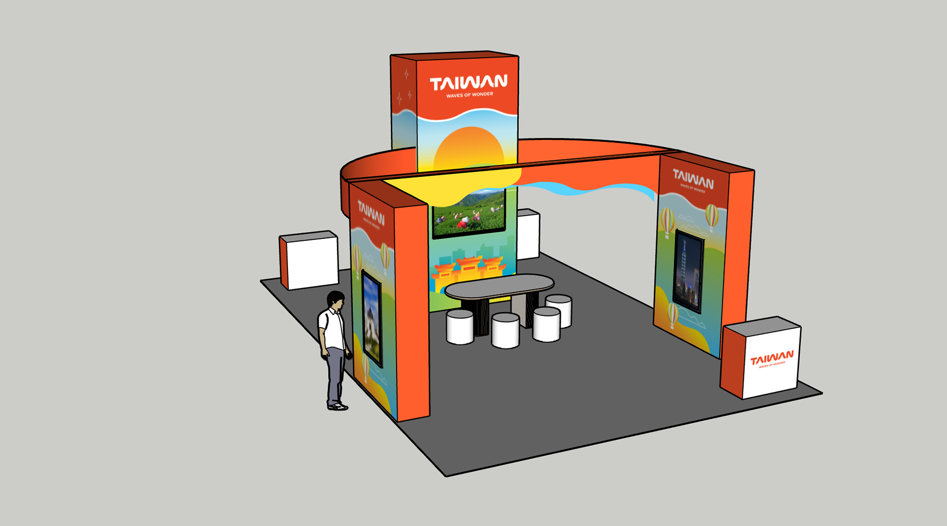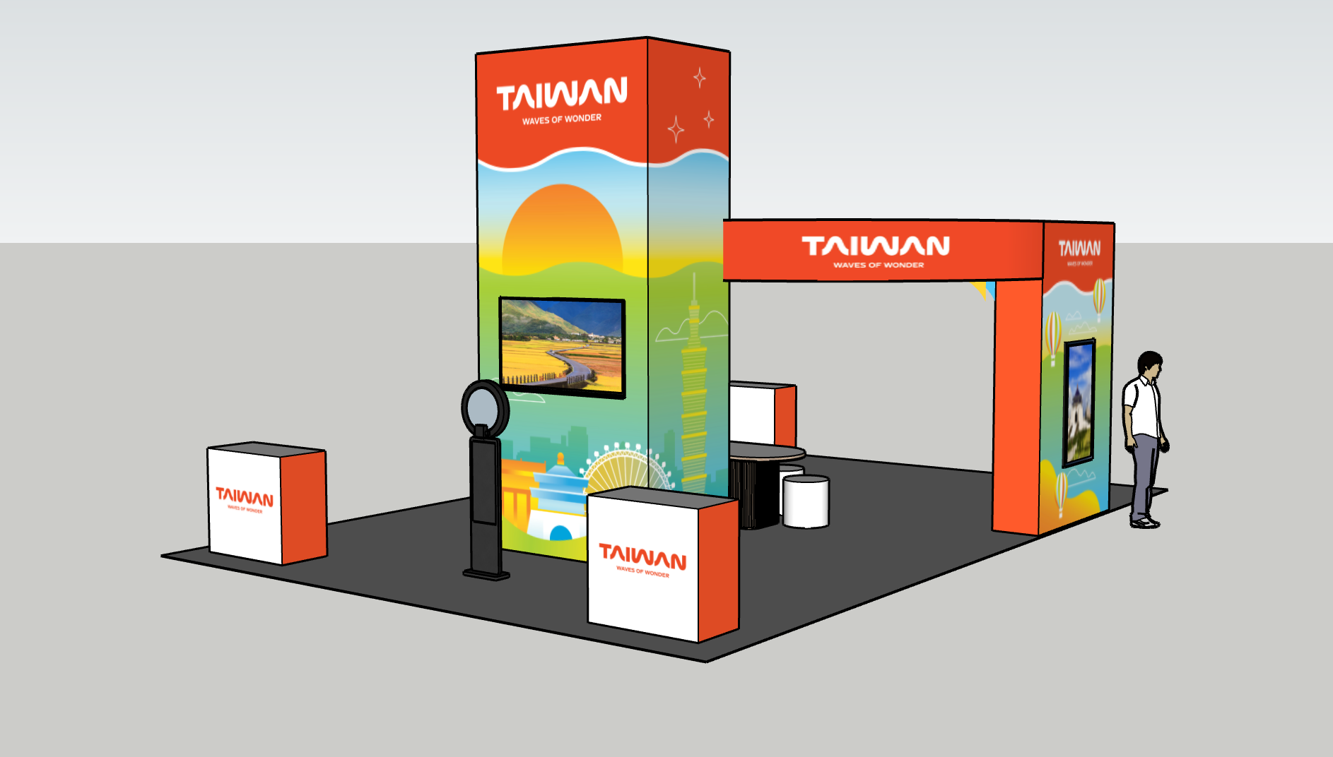 Custom designed tradeshow booth at Taiwan Expo event. Created an engaging space with LED touch points, tea ceremony, and photo kiosk.